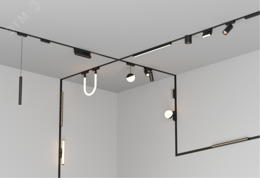 Различные виды шинопровода для магнитной системы Galakti. Различаются по способу монтажа: накладной, подвесной или встраиваемый.