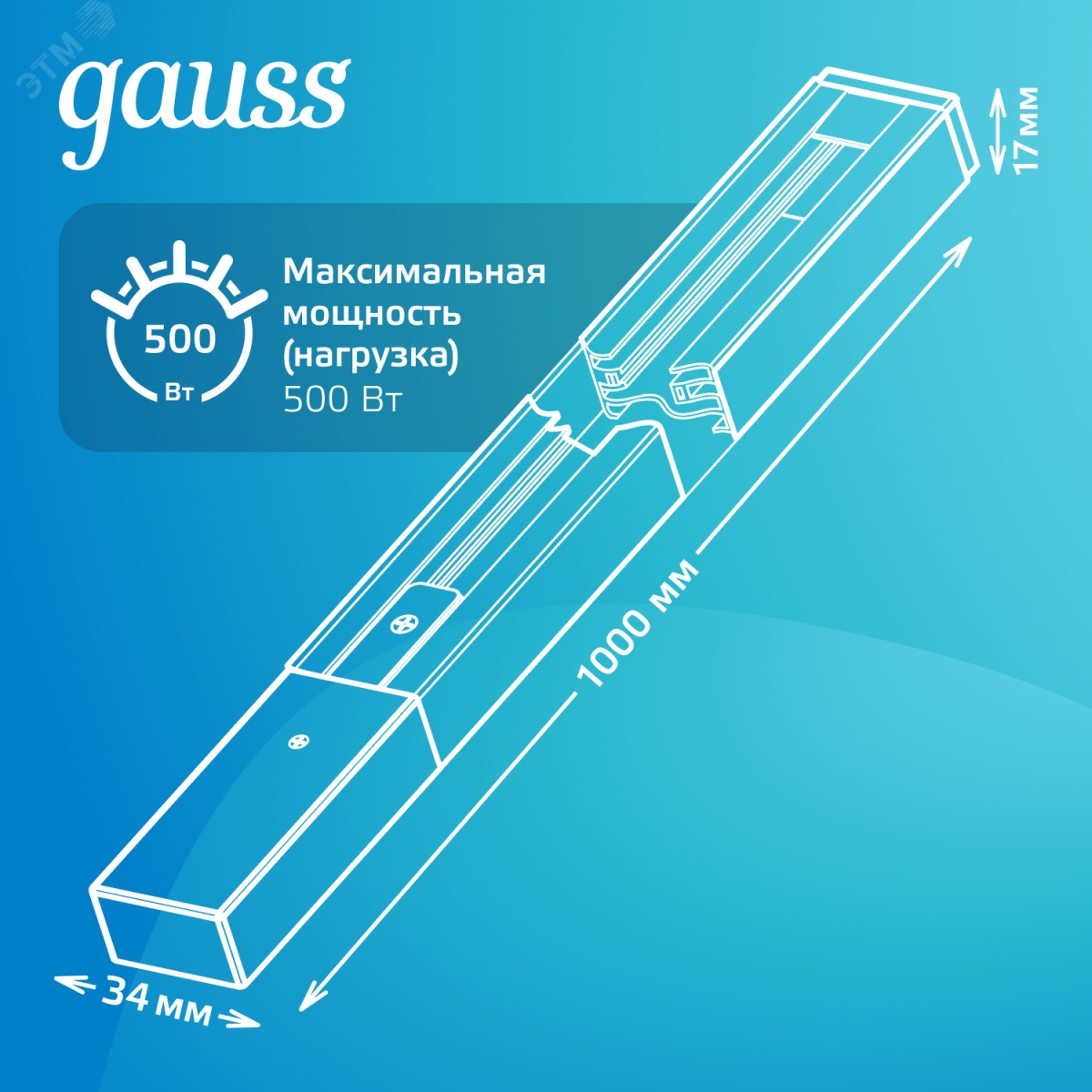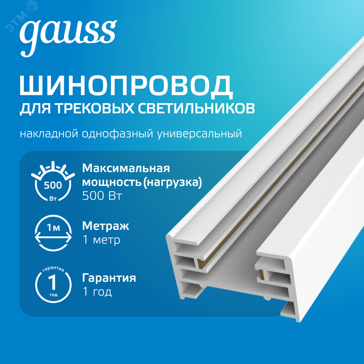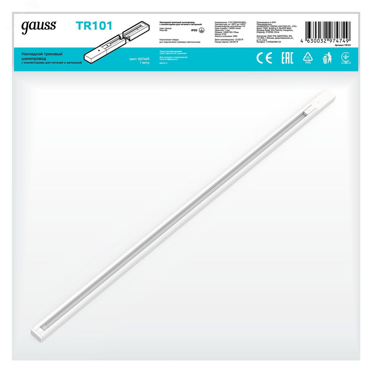 Шинопровод накладной AC 220В Белый IP20 1000х34мм с адаптером питания и заглушкой Track Gauss