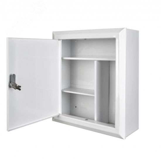 Аптечный шкаф MASTERMANN 3, шкаф предназначен для использования в бытовых и также производственных помещения. Класс защиты шкафа - IP 31. Материл корпуска и дверцы - металл.