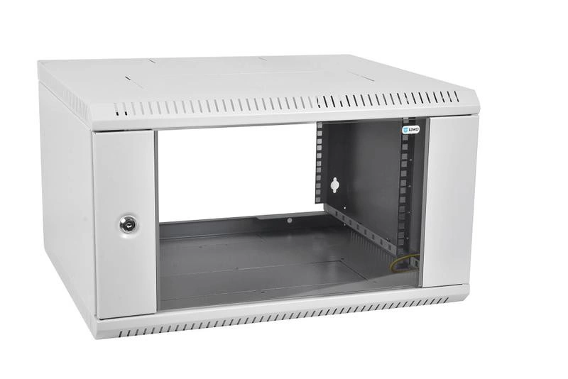 Настенный шкаф 19" ШРН-Э имеет полностью разборную конструкцию. Вертикальные направляющие регулируются по глубине. Система заземления входит в стандартную комплектацию. Возможна установка задней стенки. Распределенная нагрузка 50 кг. Класс защиты обеспечиваемый оболочкой IP20