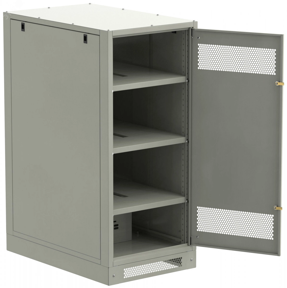 Шкаф аккумуляторный серии LINEA B предназначен для размещения и защиты от несанкционированного доступа аккумуляторных батарей (АБ). Шкафы LINEA B повышенной прочности со сварным каркасом и усиленными полками позволяют размещать АБ до 500 кг. на полке. Вместе со шкафом поставляются полки. Количество полок в комплекте зависит от высоты шкафа. Каркас позволяет размещать полки с шагом 30мм. В полках предусмотрены вырезы для удобства соединения АБ. В нижней части корпуса предусмотрена плата для установки предохранителя-выключателя-разъединителя ПВР. Шкаф аккумуляторный серии LINEA B двухсекционный поставляется на цоколе высотой 100мм. и состоит их двух секций. В месте эксплуатации требуется соединение секций метизами из комплекта поставки. Все металлические части шкафа LINEA B заземлены.