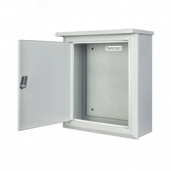 Монтажный навесной шкаф Mastermann версий '1К', '2К', '3К', (далее шкаф) предназначен для размещения и установки в нём - электрооборудования, блоков защиты, коммутационных аппаратов и т.п. Установка может производиться как внутри помещений, так и снаружи. Монтажные шкафы данного типа устанавливаются навесным методом. Шкаф представляет собой сварную конструкцию, состоящую из корпуса, дверцы в раме и козырька. Внутри корпуса установлена монтажная панель. Материал корпуса и дверцы из листовой стали толщиной 1,2 мм. Покрытие порошковой полиэфирной краской RAL 7035. Степень защиты IP41.