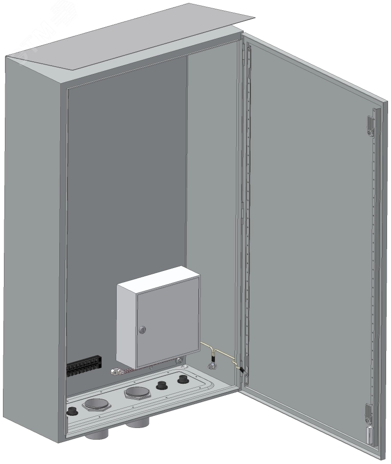 Шкаф ШПУ-2Т выполнен из листовой стали. Для ввода кабелей на дне шкафа установлены вводные муфты, а также установлены патрубки и втулки для ввода труб 50мм. Ввод труб производится заказчиком при установке на объекте в соответствии с рис. Для крепления на круглый или квадратный столбы в комплекте поставки шкафа входит универсальный комплект крепления. Для надежной защиты ШПУ-2Т от осадков на нем устанавливается металлический козырек. Шкаф оборудован магнитоконтактным извещателем для сигнализации о несанкционированном доступе.
