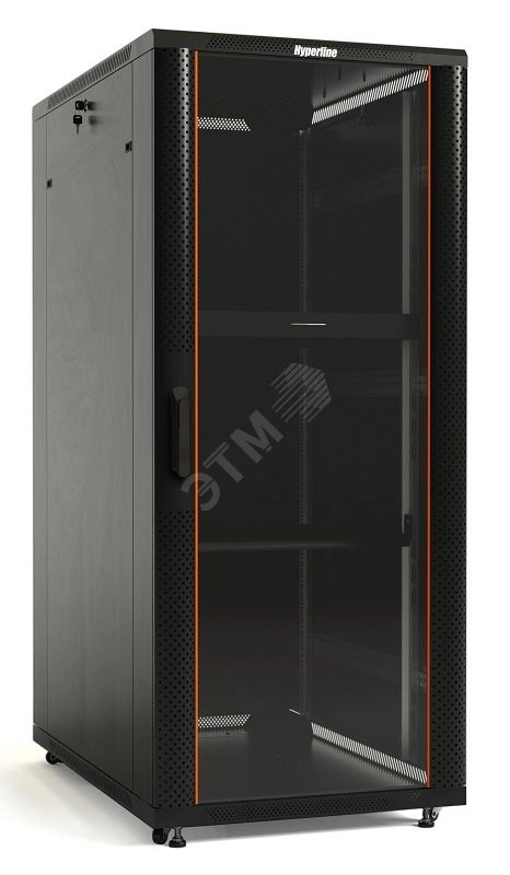 Шкаф напольный 19-дюймовый 22U 1166x600х1000 мм (ВхШхГ) передняя стеклянная дверь со стальными перфорированными боковинами задняя дверь сплошная ручка с замком крыша нового типа цвет черный (RAL 9004) (разобранный)