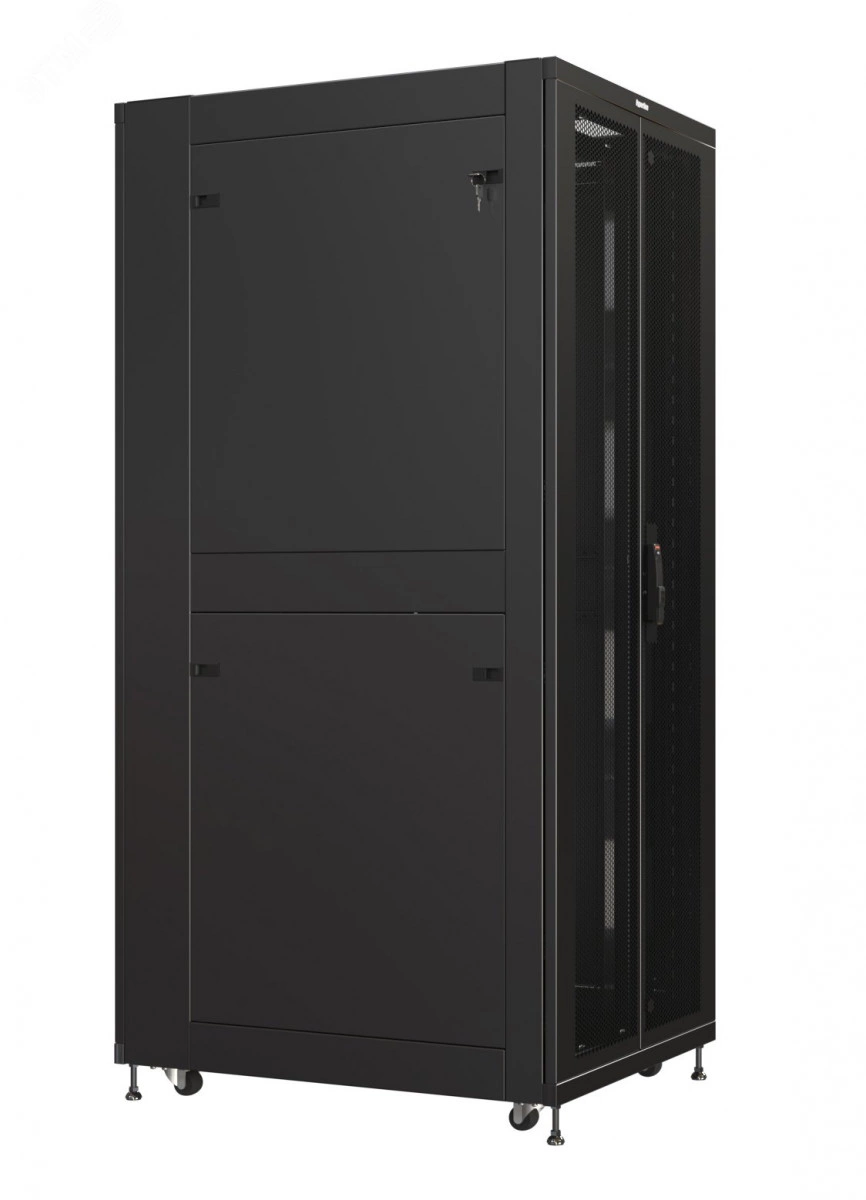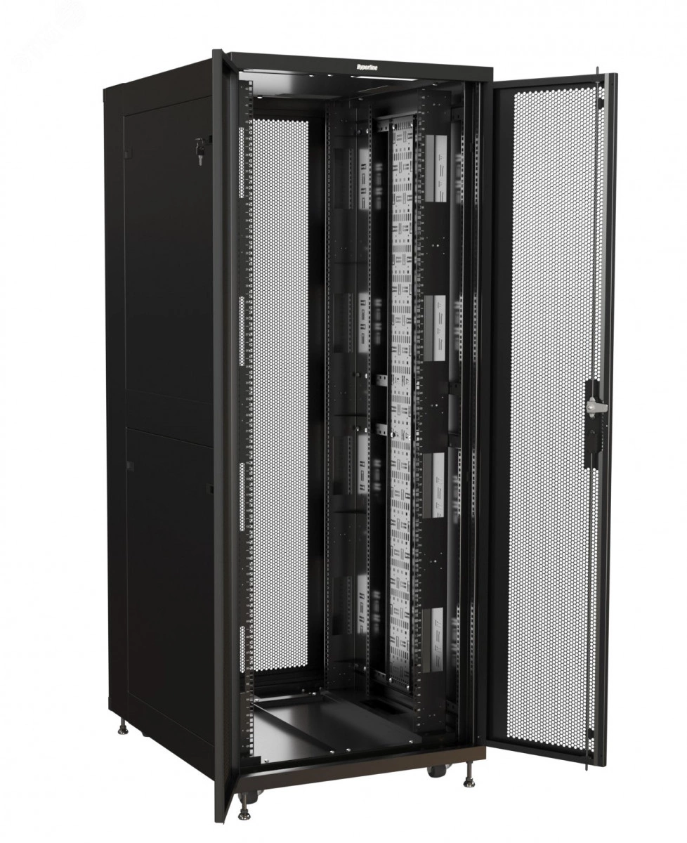 Шкаф напольный 19-дюймовый TSR-4881-DDAA-P12-R101-RAL9005, 48U, 2325x800х1000 мм (ВхШхГ), передняя и задняя двойные распашн. перфорир. двери, боковые панели съемные, панель крыши с заглушками щеточных вводов, цвет черный (RAL 9005)