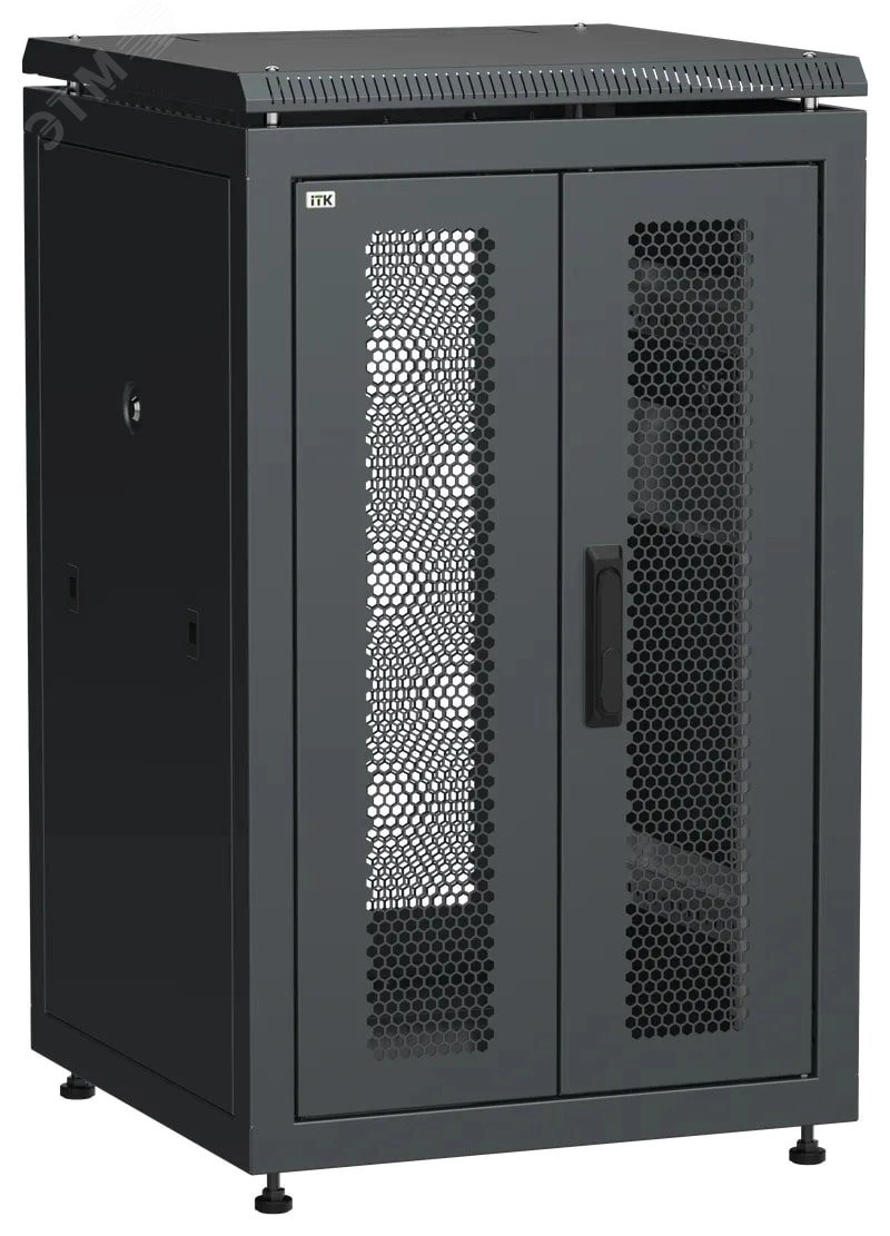 Шкаф напольный сетевой 19' LINEA N 18U 600х600мм передняя распашная перфорированная дверь задняя перфорированная черный
