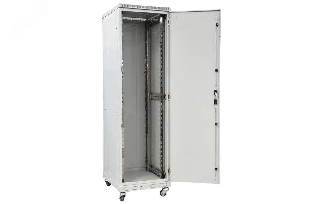 Шкаф напольный телекоммуникационный предназначен для размещения активного и пассивного телекоммуникационного оборудования. Изделие выполнено в системе несущих конструкций серии 482.6 мм (19''). Климатическое исполнение УХЛ4, предназначено для эксплуатации в закрытых помещениях. Имеет полностью разборную конструкцию и состоит из основания, крыши и двух сварных рам, соединенных комплектом швеллеров. Поставляется в трех транспортных местах. За счет элементов крепления каркас шкафа имеет повышенную жесткость. Распределенная вертикальная нагрузка до 600 кг. Стандартно шкаф комплектуется передней дверью, боковыми и задней стенками с замками. Предусмотрены кабельные вводы в верхней и нижней частях шкафа. В основание или крышу шкафа возможна установка вентиляторных модулей. Вертикальные направляющие регулируются по глубине. Система заземления шкафа входит в стандартную комплектацию.