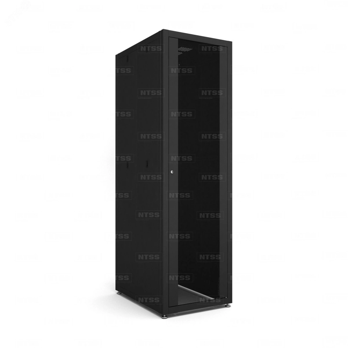 Шкаф напольный телекоммуникационный NTSS RS 42U 600х800мм, 4 профиля 19, двери стекло и сплошная металл, регулируемые опоры, боковые стенки съемные, разобранный, черный RAL 9005 (NTSS-RSP42U6080GS-BL)