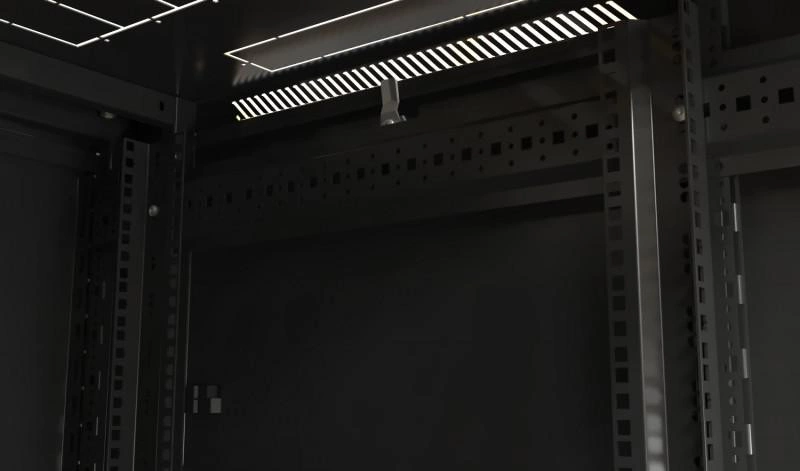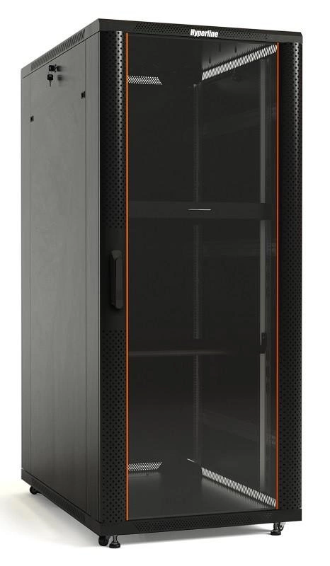 Шкаф напольный TTB-4268-AS 19дюйм 42U 2055х600х800мм перед. стекл. дверь со стальн. перф. боковинами задн. дверь сплошная ручка с замком крыша нового типа черн. (RAL 9004) Hyperline 392682