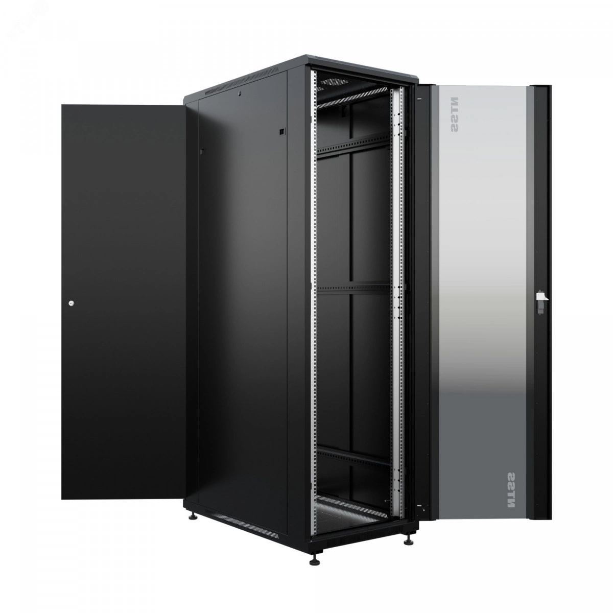 Шкаф напольный универсальный серверный NTSS R 42U 800х1000мм, 4 профиля 19, двери стекло и сплошная металл, боковые стенки съемные, регулируемые опоры, разобранный, черный RAL 9005