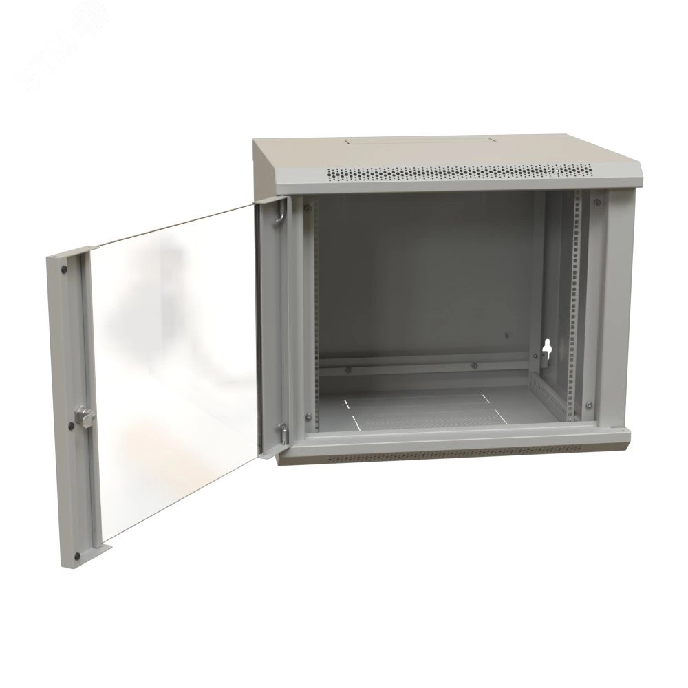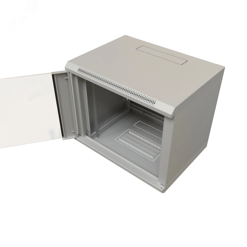 "Шкаф настенный 19-дюймовый 19"" 12U 650x600х600мм стеклянная дверь с перфорацией ручка с замком серый RAL 7035 WRline WR-TW-1266-GP-RAL7035"