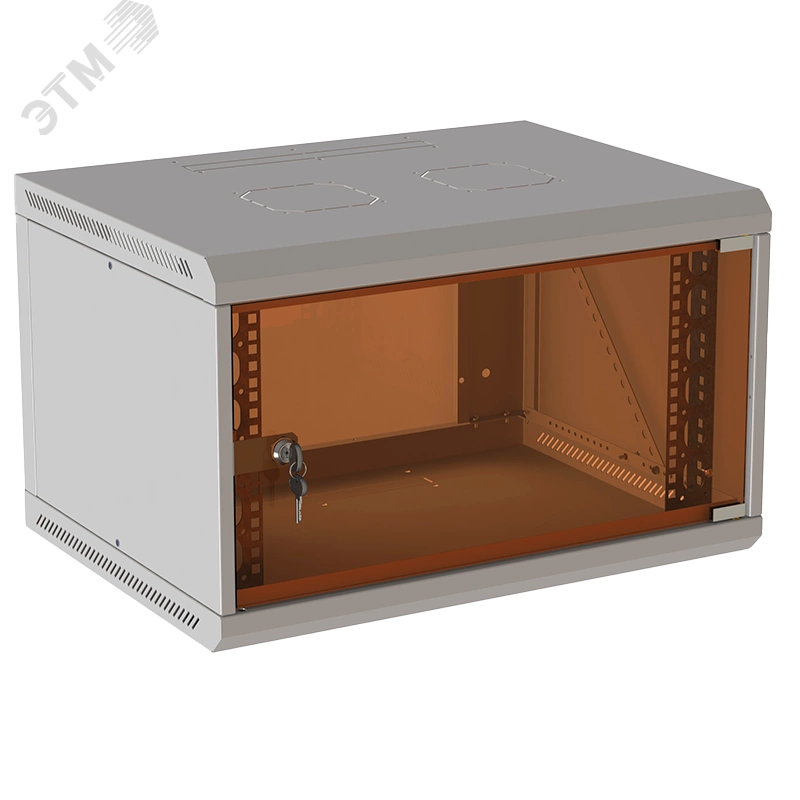 Телекоммуникационные настенные шкафы 19'' предназначены для размещения сетевого и телекоммуникационного оборудования в закрытых помещениях. Эти шкафы имеют разборную конструкцию. Кабельные вводы находятся в верхней и нижней частях шкафа и закрыты съемными заглушками, которые можно удалить при установке. Возможна установка пылезащиты для кабельных вводов (дополнительная опция). В крыше шкафа предусмотрены отверстия для вентиляторов, также закрытые заглушками, которые снимаются при установке вентиляторов. Боковые стенки шкафа съемные и крепятся на винтах для удобства монтажа. Передняя дверь изготовлена из ударопрочного стекла и оснащена почтовым замком, она открывается на 120 градусов вправо. Задняя стенка отсутствует, но может быть приобретена отдельно.