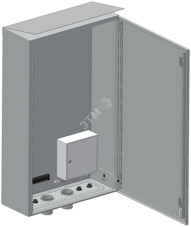 Шкаф ШПУ-2Т выполнен из листовой стали. Для ввода кабелей на дне шкафа установлены вводные муфты, а также установлены патрубки и втулки для ввода труб 50мм. Ввод труб производится заказчиком при установке на объекте в соответствии с рис. Для крепления на круглый или квадратный столбы в комплекте поставки шкафа входит универсальный комплект крепления. Для надежной защиты ШПУ-2Т от осадков на нем устанавливается металлический козырек. Шкаф оборудован магнитоконтактным извещателем для сигнализации о несанкционированном доступе.