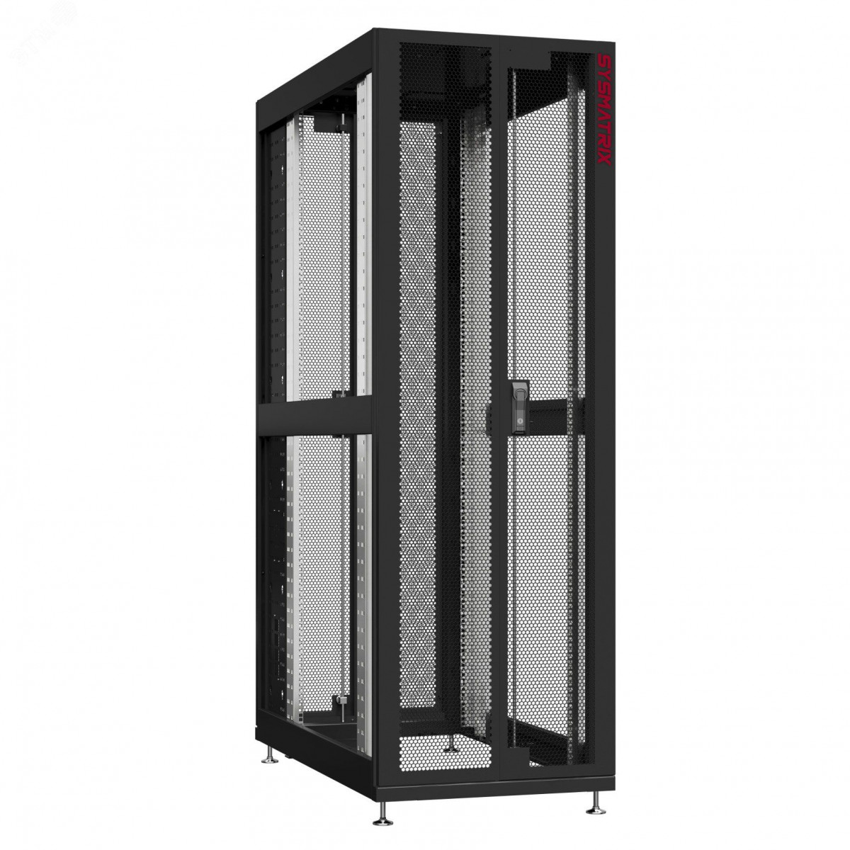 Серверный шкаф 24U SYSMATRIX NS надёжное решение для установки серверного оборудования в Дата центрах. Нагрузочная способность до 1,2 тонны. Шкаф NS имеет широкий спектр конструктивных изменений, что позволяет установить оборудование высотой до 48U и глубиной до 1200 мм. Выбор из шести типов дверей и двух типов боковых панелей позволяет выбрать требуемый вариант для конкретных нужд. Для пассивного охлаждения оборудования из корпуса серверного шкафа продумана возможность полностью демонтировать крышу, либо установка эффективной активной вентиляции. Шкаф серии NS обладает удобными возможностями для организации кабеля. На крыше шкафа установлены кабельные органайзера, а внутри корпуса расположены два вертикальных организатора, позволяющие разводить кабельные жгуты по всей высоте. Двери и боковые панели укомплектованы замками с ключами, также возможно дополнительно оснастить комбинированным замком со считывателем смарт-карт.