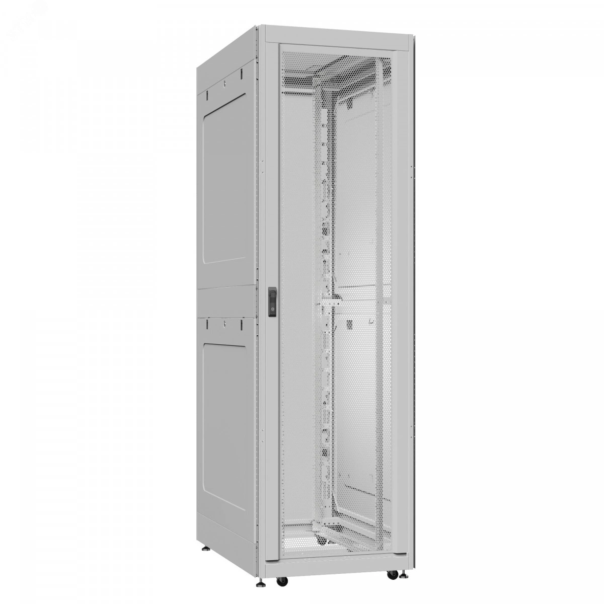 Выдерживает экстремальные нагрузки до 2 тонн|Два формата установки монтажных профилей – 19’’ или 23’’|Три пары профилей обеспечивают равномерное распределение нагрузки|Шесть типов дверей для левой и правой установки|Два типа боковых панелей – глухие