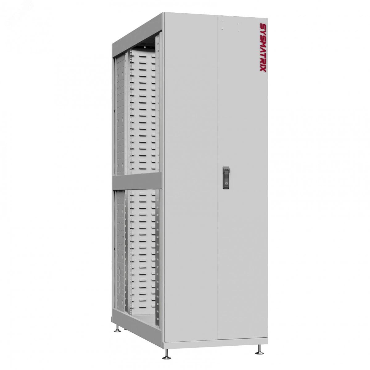 Серверный шкаф 48U SYSMATRIX NS - надёжное решение для монтажа серверного оборудования в ЦОД. Нагрузочная способность до 1,2 тонны. Шкаф NS имеет широкий диапазон конструктивных изменений, что позволяет установить оборудование высотой до 48U и глубиной до 1200 мм. Выбор из 6 типов дверей и двух типов боковых панелей позволяет выбрать требуемый вариант для конкретных нужд. Для пассивного теплообмена оборудования из корпуса серверного шкафа продумана возможность полностью демонтировать крышу, либо установка мощной активной вентиляции. Шкаф серии NS обладает удобными возможностями для организации кабеля. На крыше шкафа установлены кабельные органайзера, а внутри корпуса расположены два вертикальных организатора, позволяющие разводить кабельные жгуты по всей высоте. Двери и боковые панели оборудованы замками с ключами, также допускается дополнительно оснастить комбинированным замком со считывателем смарт-карт.