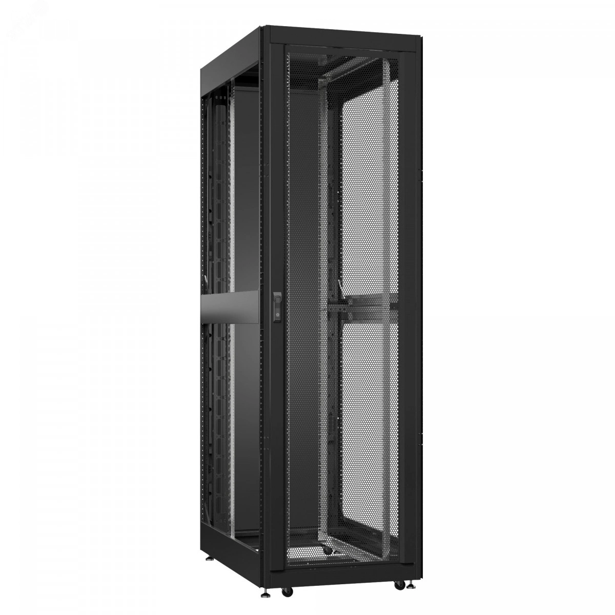 Выдерживает экстремальные нагрузки до 2 тонн|Два формата установки монтажных профилей – 19’’ или 23’’|Три пары профилей обеспечивают равномерное распределение нагрузки|Шесть типов дверей для левой и правой установки|Два типа боковых панелей – глухие