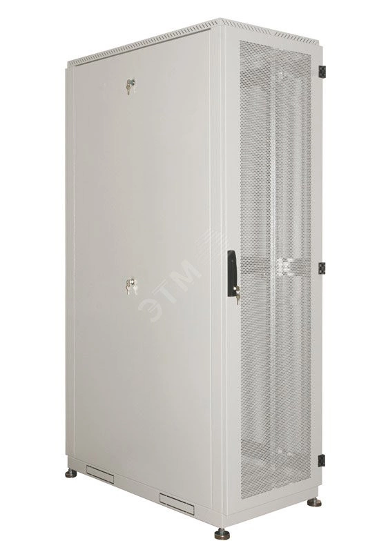 Шкаф серии ШТК-С предназначен для размещения серверного оборудования, организации центров хранения и обработки данных. Шкаф имеет усиленную конструкцию. Включает две сварные рамы, соединенные комплектом швеллеров, основание и крышу. Легок в сборке. Распределенная вертикальная нагрузка до 1000 кг. Шкаф стандартно комплектуется одинарными или двойными перфорированными дверями с ригельными замками и боковыми стенками. Одинарные двери имеют как правую, так и левую навеску, угол открытия 180 градусов. Стенки надежно фиксируются точечными замками. Доступ для монтажа, коммутации и обслуживания возможен с четырех сторон, через боковые легкосъемные стенки, переднюю и заднюю двери. Шкаф имеет 4 оцинкованные вертикальные направляющие, регулируемые по глубине. Кабельные вводы находятся в основании и крыше шкафа.