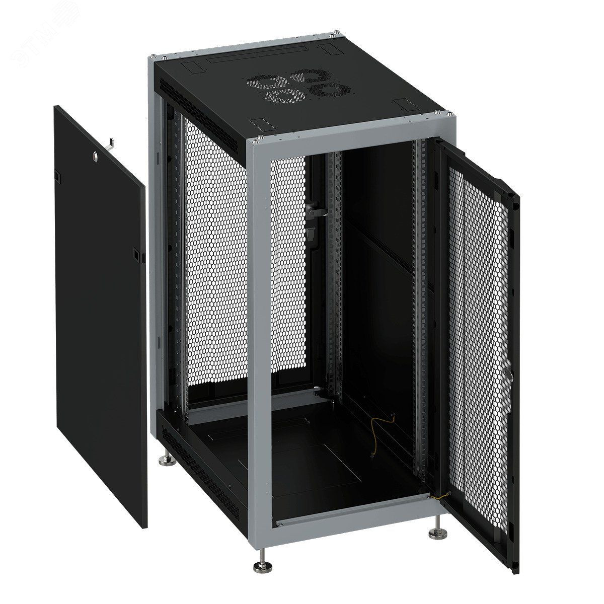 Шкаф 19 напольный 37U 600х800 для построения телекоммуникационных и серверных сетей степень пылевлагозащищенности IP20. За счет современного дизайна и компактных размеров, шкафы серии SL 6837.933 рекомендованы для установки в административных и публичных помещениях. Передняя и задняя двери – металлические и выполнены с перфорацией, обеспечивая естественную циркуляцию воздуха внутри серверного шкафа.Съемные боковые панели оснащенные замками, гарантируют контроль доступа к установленному оборудованию. Сверху и снизу, по четыре кабельных ввода. Перфорация на боковых поверхностях сверху и снизу, обеспечивает естественную вентиляцию оборудования. Так же, предусмотрена установка модулей для организации активной вентиляции. Максимальная загрузка оборудованием до 800кг.