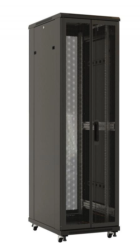 Шкаф TTB-4781-DD-RAL9004 напол. 19дюйм 47U 2277х800х1000мм передн. и задн. распашные перфор. двери (75%) ручка с замком крыша нового типа (RAL 9004) (разобранный) черн. Hyperline 392700