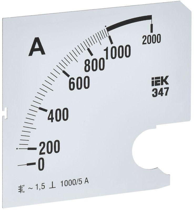 Полное описание: Шкала сменная для амперметра Э47 1000/5А-1.5 96х96мм IEK IPA20D-SC-1000