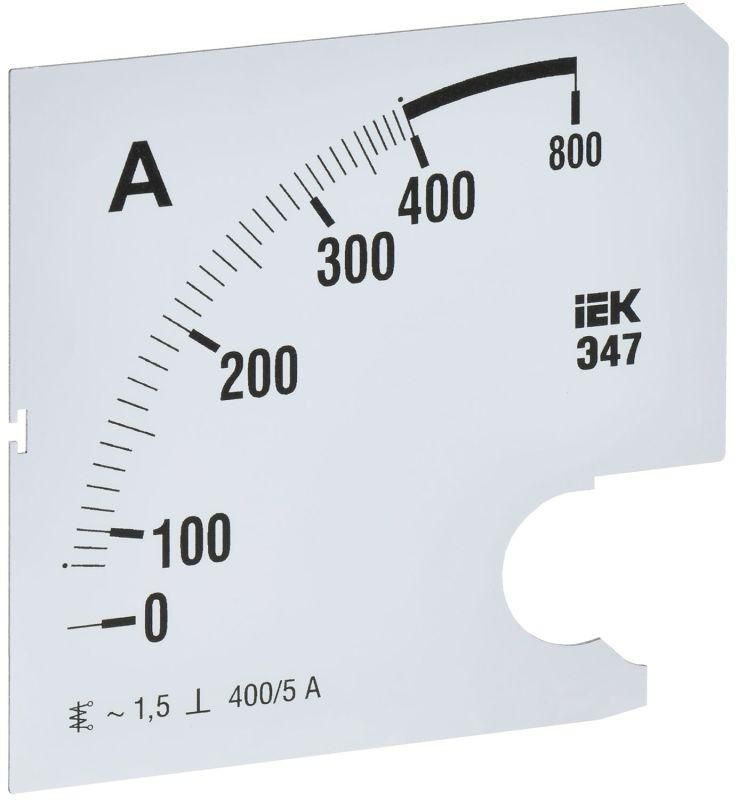 Полное описание: Шкала сменная для амперметра Э47 400/5А-1.5 96х96мм IEK IPA20D-SC-0400