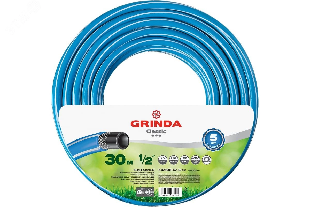 Шланги GRINDA, изготовленные из качественного ПВХ, армированы прочнейшей синтетической нитью. Выдерживают широкий температурный диапазон без потери эластичности и прочности. В работе не скручиваются и не перегибаются. Совместимы со всеми элементами полива GRINDA и прочими современными поливочными системами.