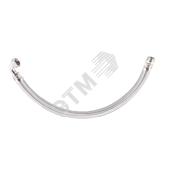 Предназначен для гибкого соединения элементов гидросистемы. Повышенная стойкость к скручиванию. Нержавеющая оплетка. Имеет угловой штуцер 90 ° с накидной гайкой.