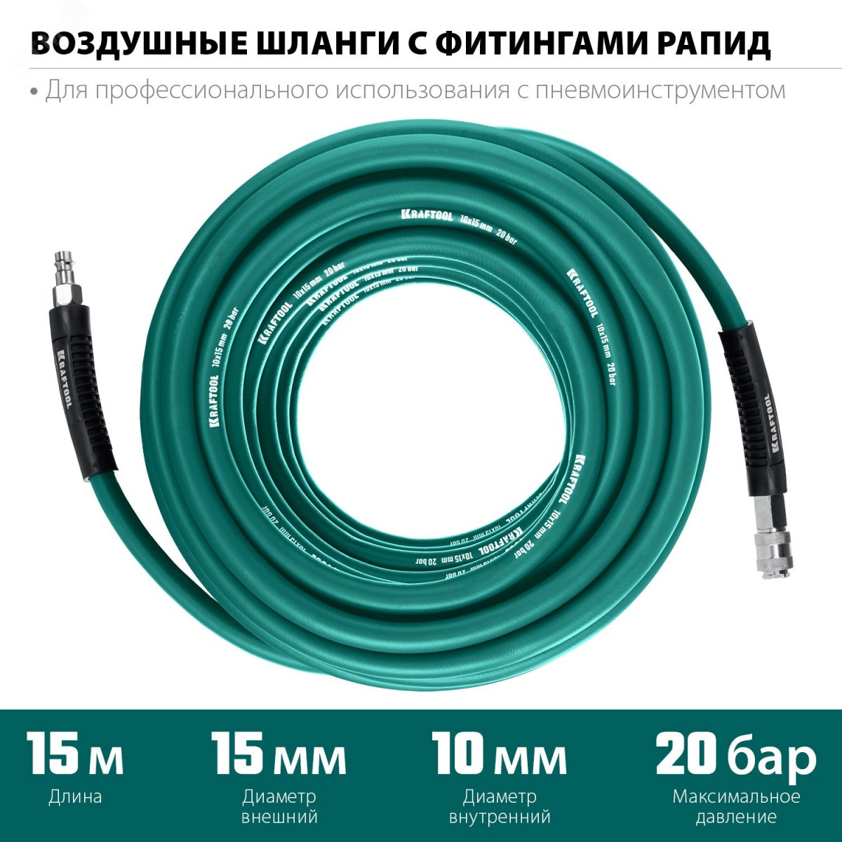 Полное описание: Шланг воздушный с фитингами рапид 15 м, 10х15 мм, 20 бар,