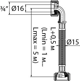 Гибкий гладкий шланг для подключения стиральной и посудомоечной машин к системе водоснабжения. Изготовлен из разработанного по особой технологии ПВХ и армированной полиамидной нити. Это обеспечивает прочность и долговечность изделия.