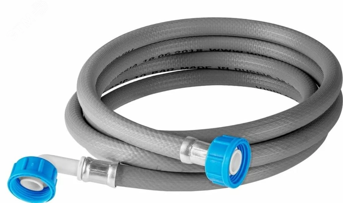 Гибкий гладкий шланг для подключения стиральной и посудомоечной машин к системе водоснабжения. Изготовлен из разработанного по особой технологии ПВХ и армированной полиамидной нити. Это обеспечивает прочность и долговечность изделия.