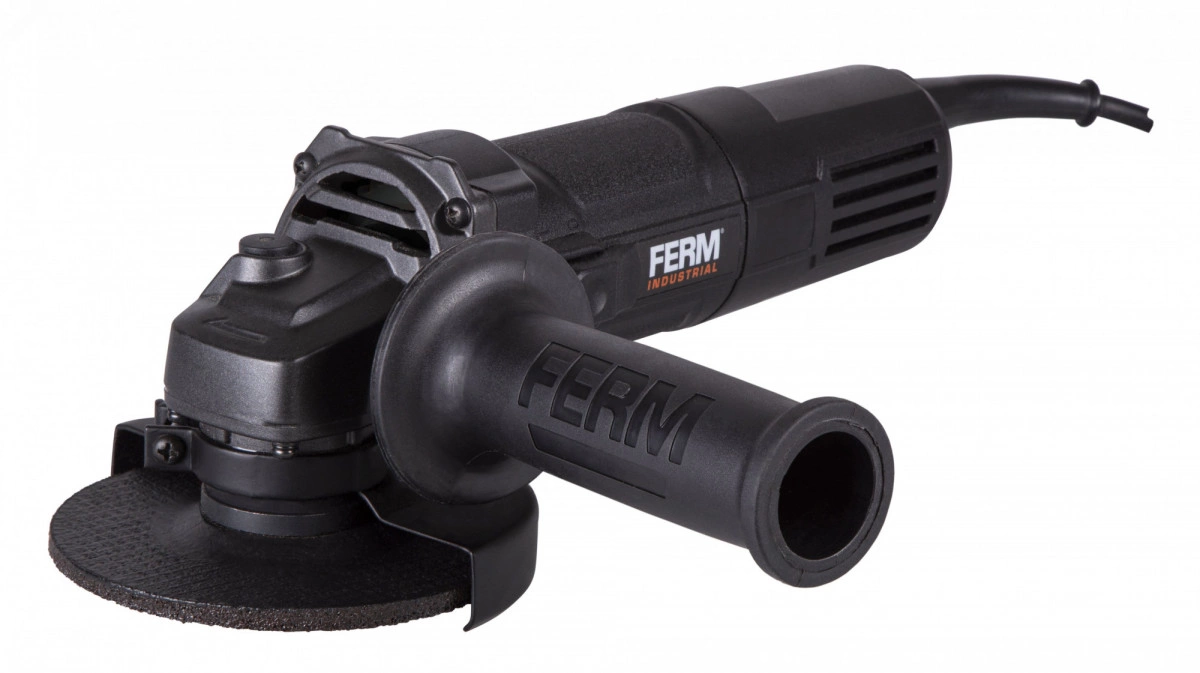 FERM AGM1112P - компактная и мощная угловая шлифовальная машина. Он рассчитан на интенсивное использование и имеет выходную мощность не менее 710 Вт. Эта угловая шлифовальная машина подходит для диска диаметром 115 мм. Шлифовальные диски можно быстро и легко заменить благодаря фиксатору шпинделя и прилагаемому гаечному ключу. Аварийный выключатель и защита от перезапуска предотвращают нежелательное включение. Переключатель можно заблокировать для удобства непрерывного использования. Эту угловую шлифовальную машину можно использовать для всех видов шлифовальных работ, таких как резка бетона, кирпича, плитки и металла. Технические характеристики - - Потребляемая мощность 710 Вт Диаметр диска 115 мм - Скорость холостого хода 11.000 / мин. - Шпиндель M14 Особенности - Электронная защита от перезапуска - Блокировка шпинделя - Регулируемый защитный кожух - Резиновый трос длиной 3 м