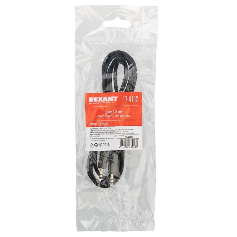 Шнур 3.5мм штекер стерео-3.5мм штекер стерео 1.5м Rexant 17-4102
