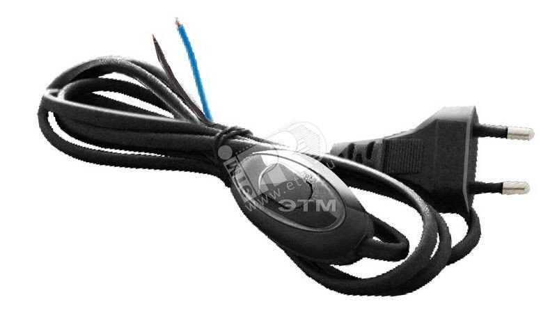 Шнур для бра с проходным выключателем ШВВП 2х0.75 1.7м черный
