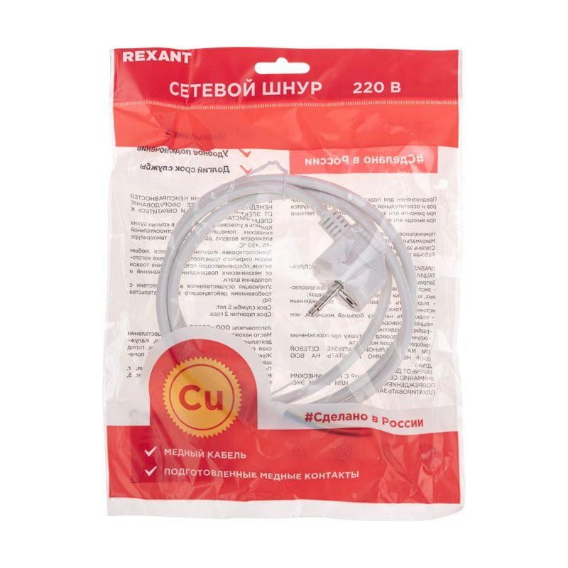 Шнур электрический с угловой вилкой 16А 3500Вт ПВС 3х1.5кв.мм 2м бел. Rexant 11-1327