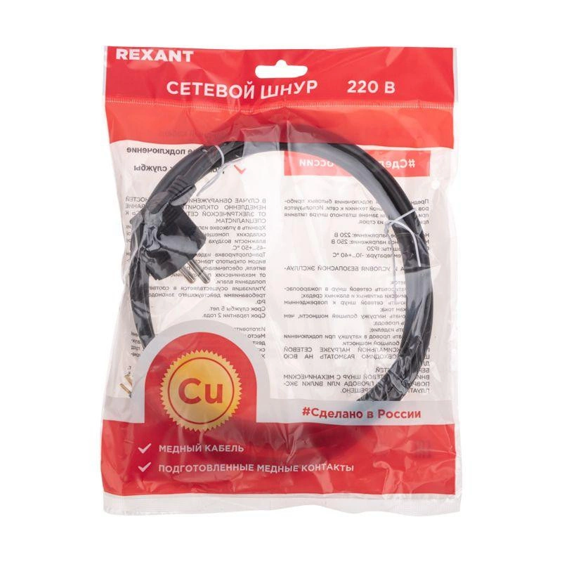 Шнур электрический с угловой вилкой 16А 3500Вт ПВС 3х1.5кв.мм 2м черн. Rexant 11-1328