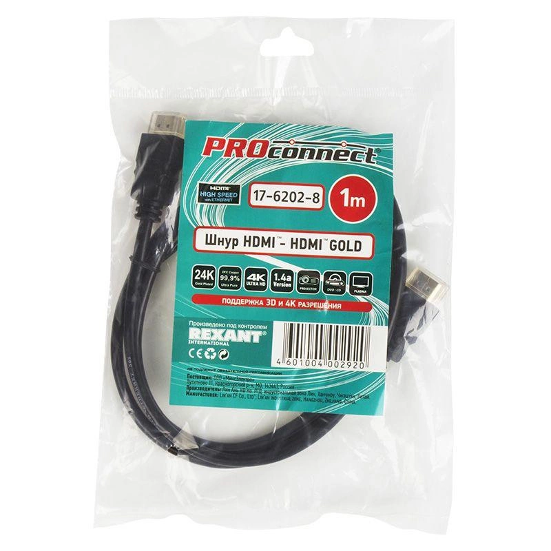 Шнур HDMI - HDMI gold 1м без фильтров (PE bag) PROCONNECT 17-6202-8