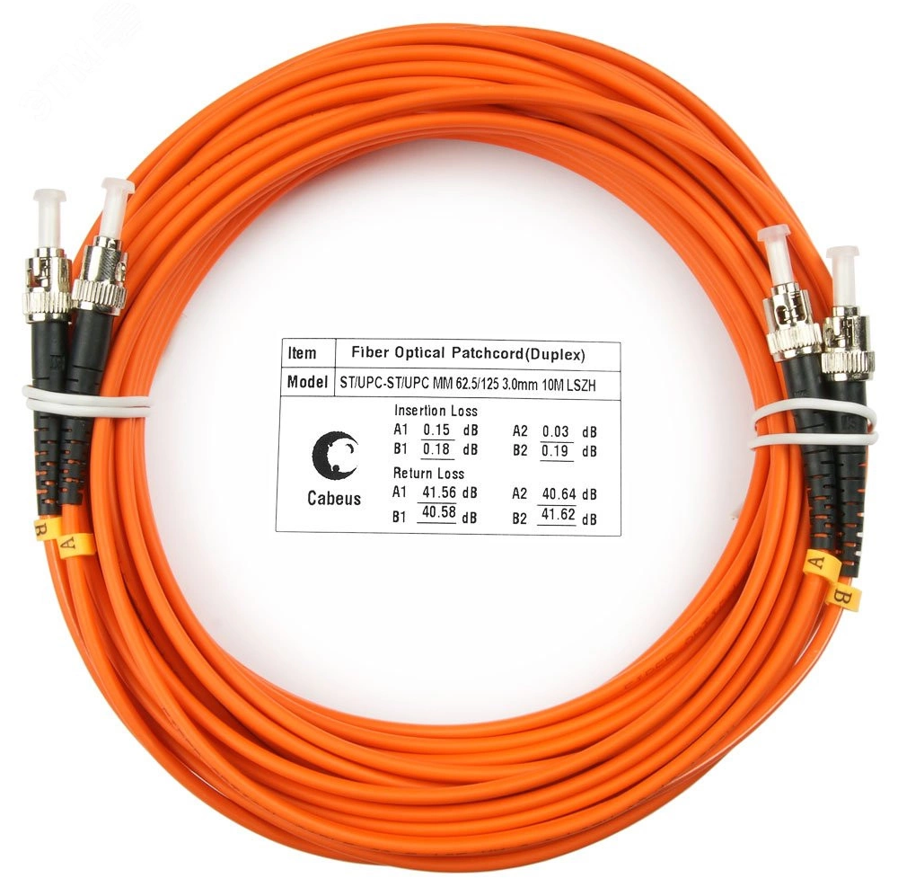 Шнур оптический duplex 10м ST-ST 62,5/125 мм LSZH