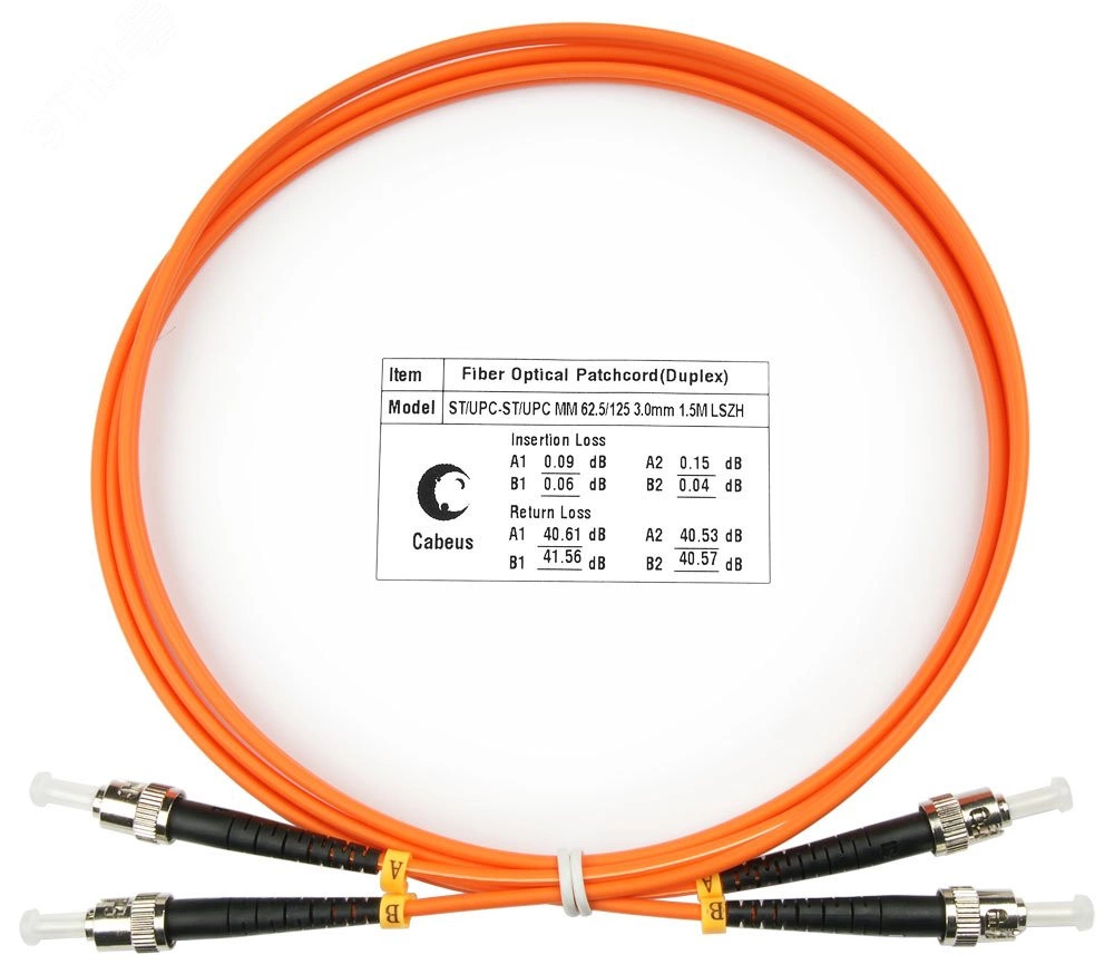 Переходной шнур (патч-корд) ST-ST 62.5/125 - это отрезок оптического кабеля c двумя волокнами (в буферном покрытии 3 мм) каждое из которых оконцовано с одной стороны оптическим коннектором SC, с другой стороны коннектором FC. Патч-корд применяется для коммутации активного оптического оборудования, а также обеспечивает соединение в распределительных устройствах (оптических кроссах и телекоммуникационных шкафах). Оптические патч-корды Cabeus производятся из качественных компонентов в соответствии с международными стандартами. Все изделия протестированы в заводских условиях. Патч-корд имеет маркировку полярности коннекторов, благодаря которой можно определить стороны входа и выхода светового сигнала. Каждый патч-корд поставляется в индивидуальной упаковке.