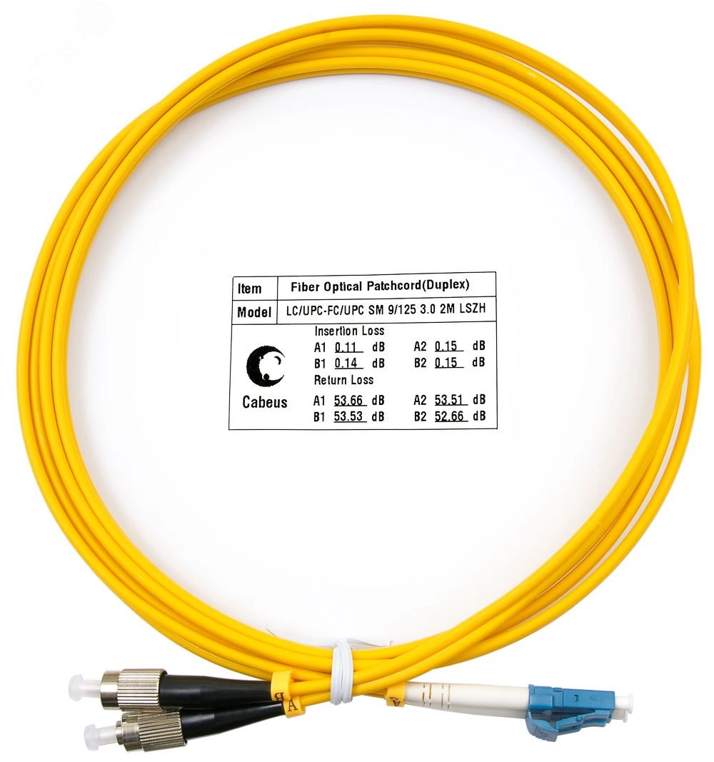 Оптический шнур (патч-корд) LC-FC 9/125 - это отрезок оптического кабеля c двумя волокнами (в буферном покрытии 3 мм) оконцованный оптическими коннекторами LC с одной стороны и SC с другой. Патч-корд применяется для коммутации активного оптического оборудования, а также обеспечивает соединение в распределительных устройствах (оптических кроссах и телекоммуникационных шкафах). Оптические патч-корды Cabeus производятся из качественных компонентов в соответствии с международными стандартами. Все изделия протестированы в заводских условиях. Патч-корд имеет маркировку полярности коннекторов, благодаря которой можно определить стороны входа и выхода светового сигнала. Каждый патч-корд поставляется в индивидуальной упаковке.