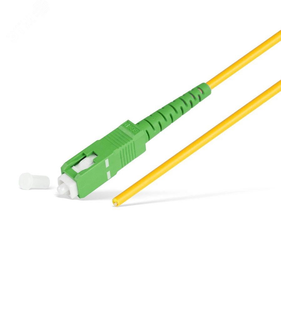 Оптический монтажный шнур без защитной внешней оболочки (pigtail) - небольшой отрезок оптического волокна с оболочкой LSZH, на одном конце волокна установлен оптический коннектор разъем типа - SC/APC. Применяется в оптических 19 дюймовых кроссах и настенных оптических боксах для внутренней коммутации - коннектор вставляется в оптический адаптер (установленный в кроссе), а свободный конец сваривается с волокнно-оптическим кабелем, место сварки защищается специальной термоусаживаемой гользой - КДЗС 60.