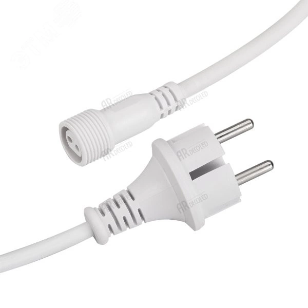 Шнур питания для светодиодных гирлянд 'Тающая сосулька'. Материал оболочки ПВХ. Цвет провода белый. В комплект входит - шнур питания с вилкой европейского стандарта (IP44), разъём подключения к гирлянде. Длина провода 1.5 метра.