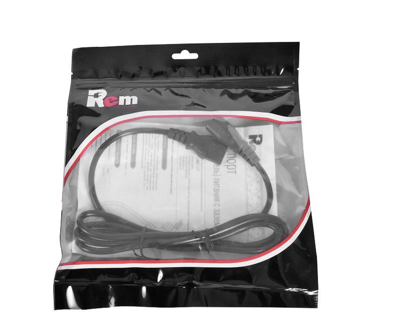 Шнур (кабель) выполнен из ПВХ черного цвета, имеет опрессованную розетку IEC 60320 C13 и вилку IEC 60320 C14. Кабель состоит из трех многожильных проводов сечением 1 мм2, имеет заземление. Номинальный ток нагрузки: 10А. Длина кабеля 1.8 метра.