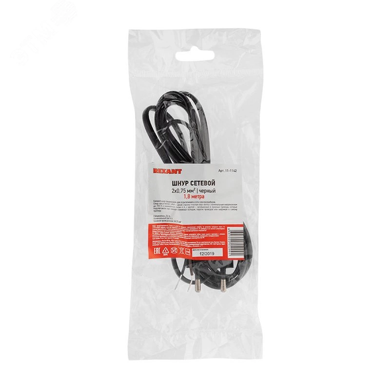 Сетевой шнур предназначен для подключения бытовых приборов, осветительной техники и т. д. Шнур состоит из провода ШВВП сечением 0,75 мм2, укомплектованного литой неразборной плоской вилкой (Евро), номинальным током 2,5 А, с подготовленными (зачищенными и лужеными) контактами.