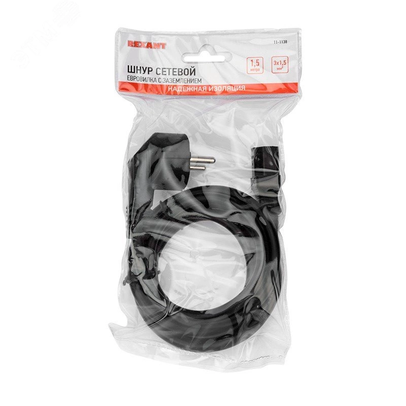Шнур сетевой евро 1,5 мм2 1,5 м (PVC) (с заземлением) для подключения к сети переменного тока с напряжением 220 B блоков электропитания и телекоммуникационных шкафах и стойках, майнинг оборудования, стационарных персональных компьютеров, мониторов, ИБП, принтеров и других периферийных устройств с штыревым разъемом C14.