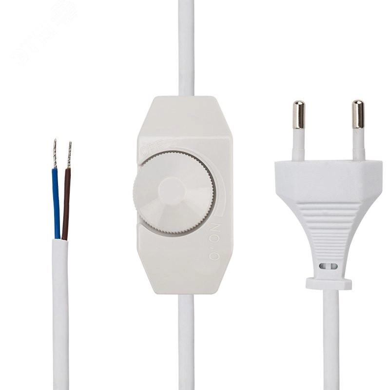 Шнур сетевой с диммером, 2х0,75 мм, 2 м белый