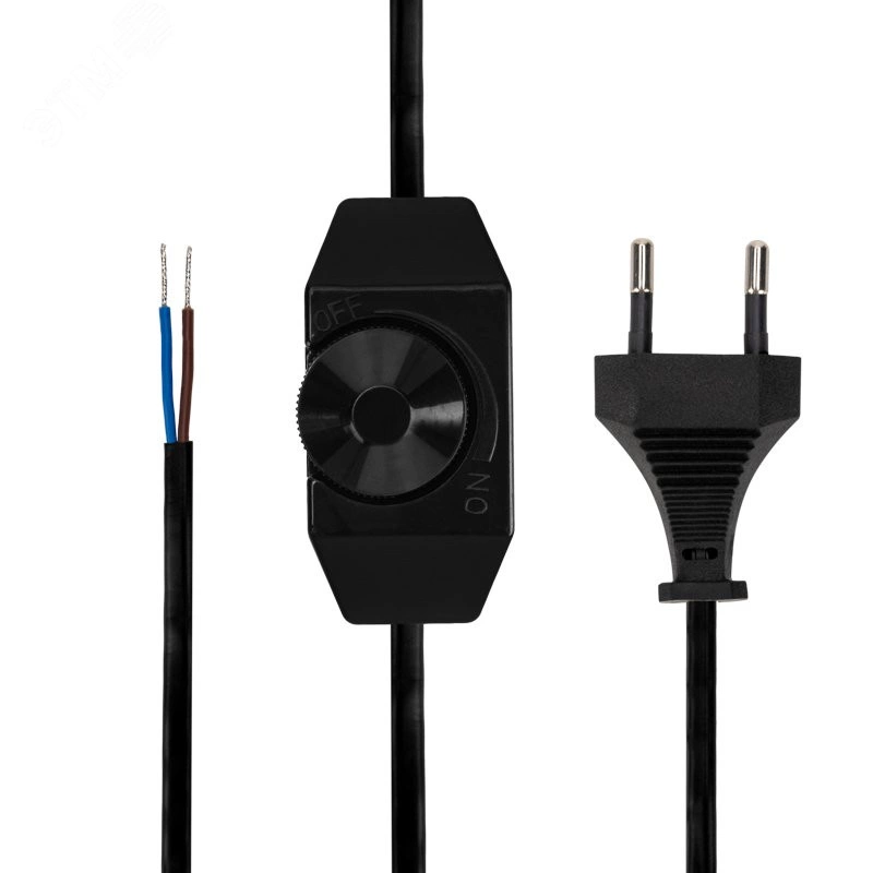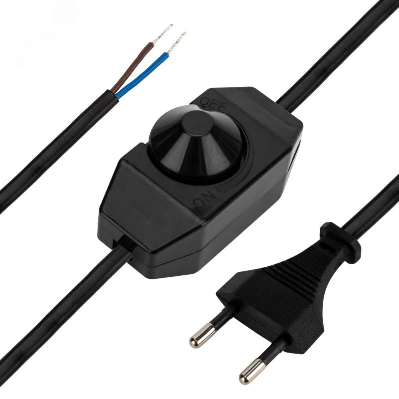 Шнур сетевой с диммером, 2х0,75 мм, 2 м черный