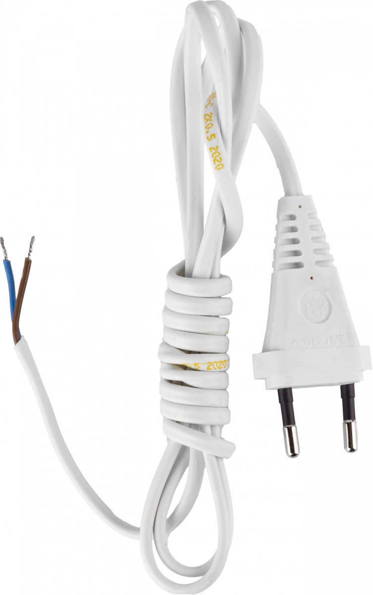 Шнур сетевой с вилкой ШВВП 2х0,5 белый 1,7 м
