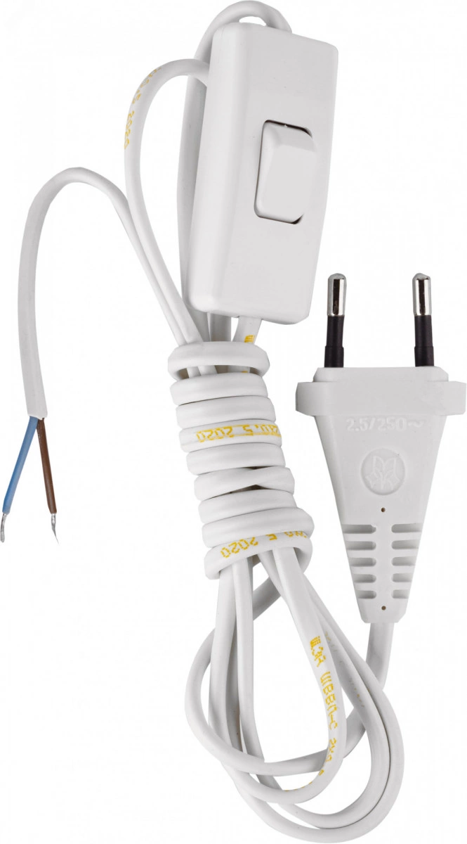 Шнур сетевой с вилкой и проходным выключателем ШВВП 2х0,5 белый 1,7м