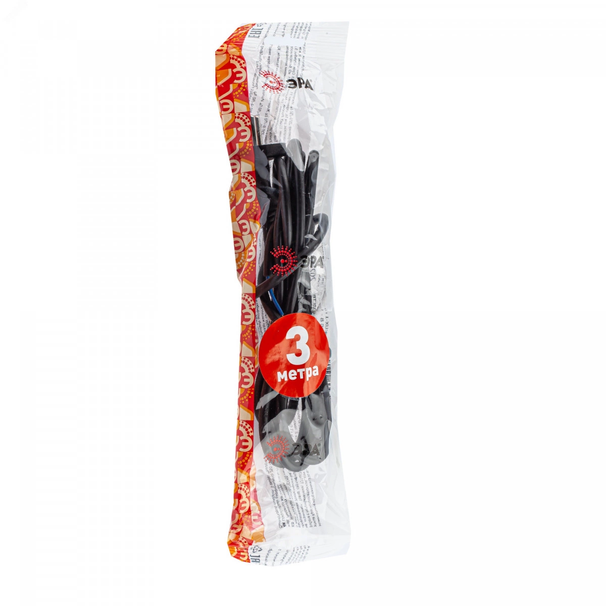 Шнур сетевой с вилкой UX-2x0,75-3m-B 3м ПВС 2x0,75мм2 черный